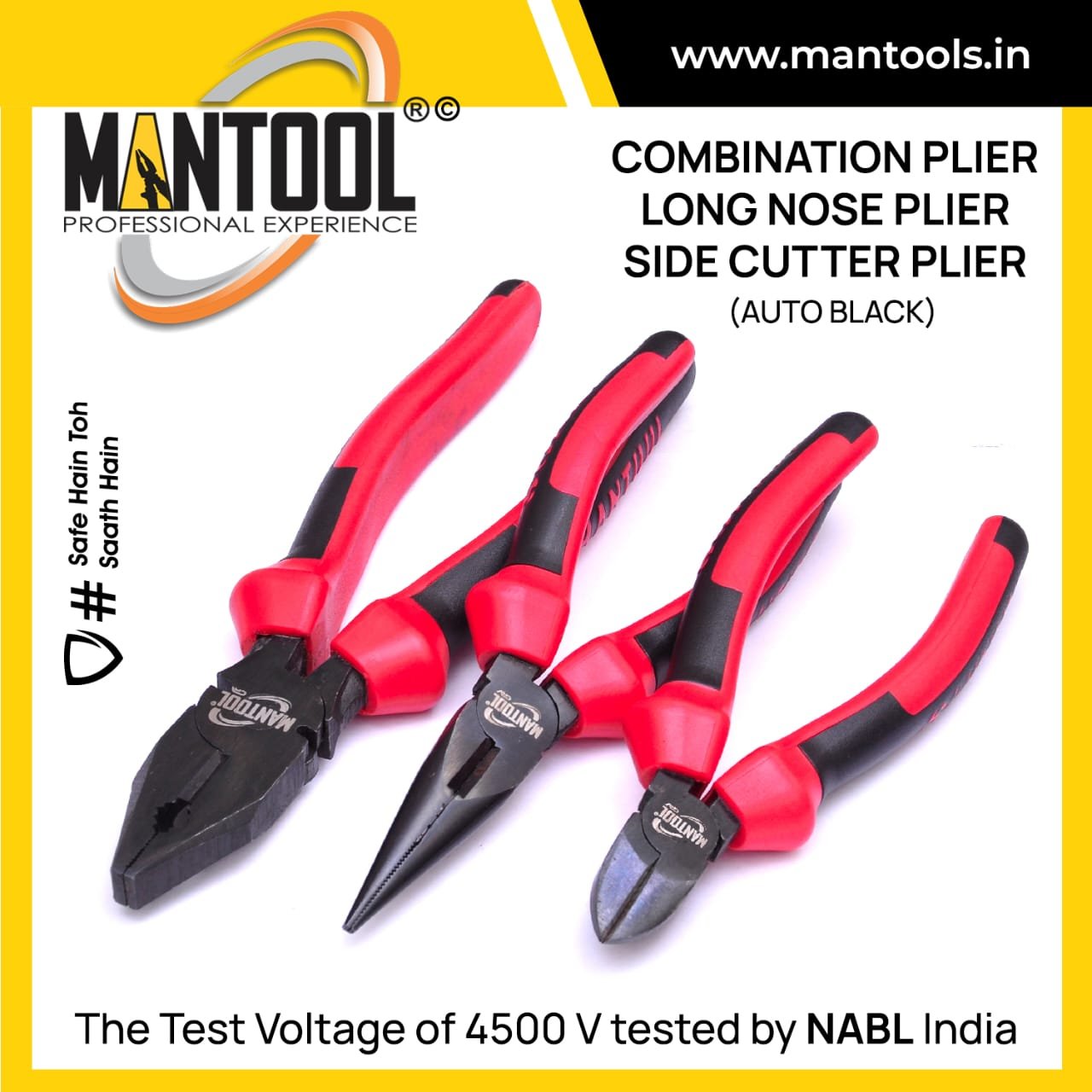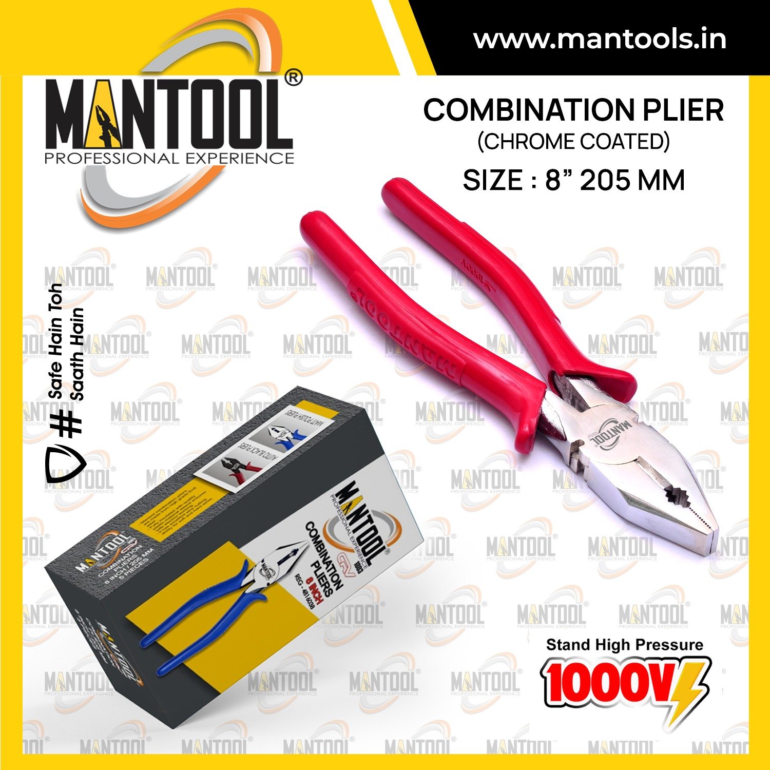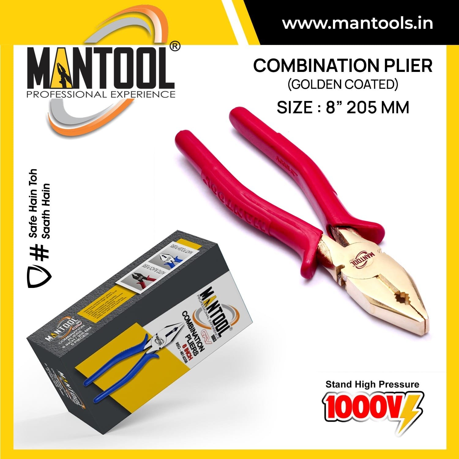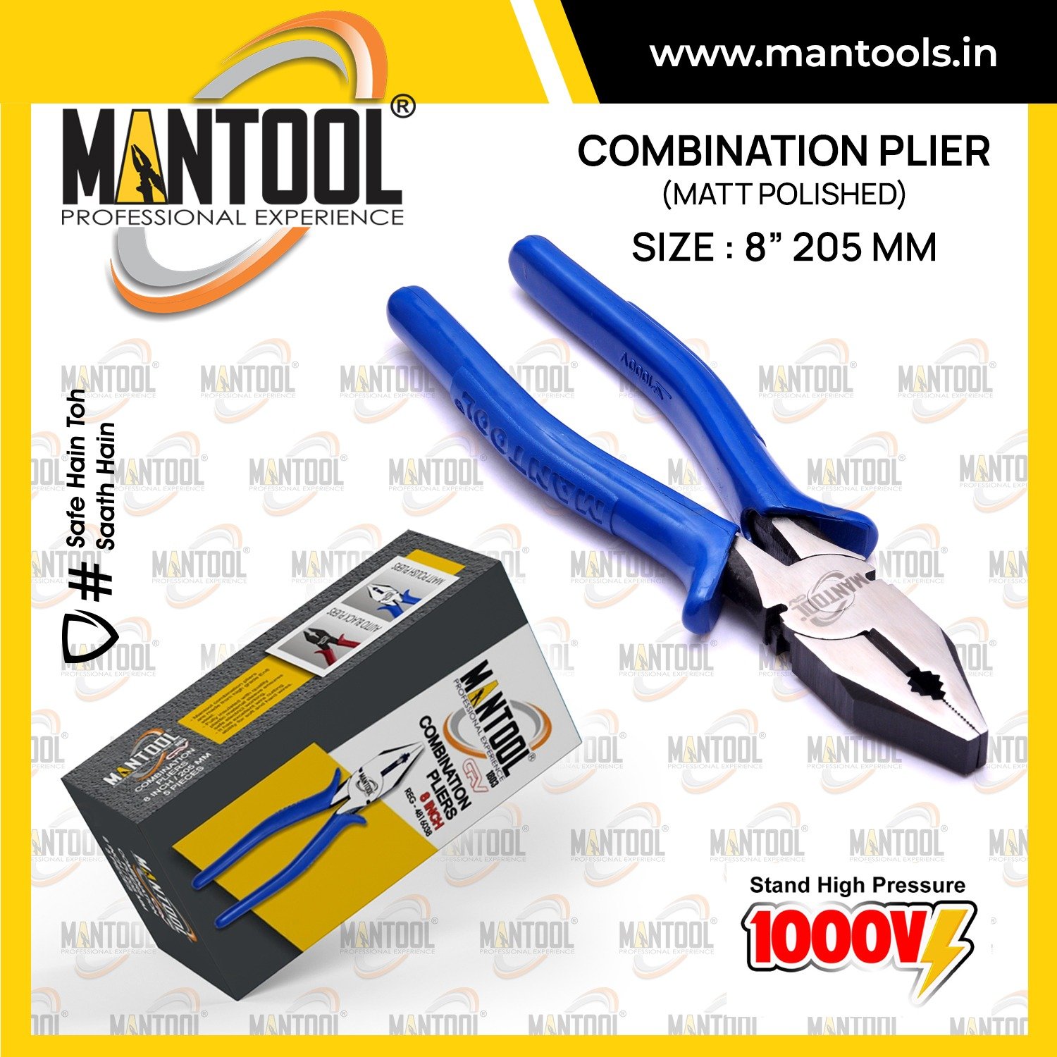 Quality Assurance MANTOOL® Combination Pliers The Pliers made from high grade Steel, forged and differentially heat treated to give performance. Fully insulated with quality plastic material sleeves ensures safe electrical working.