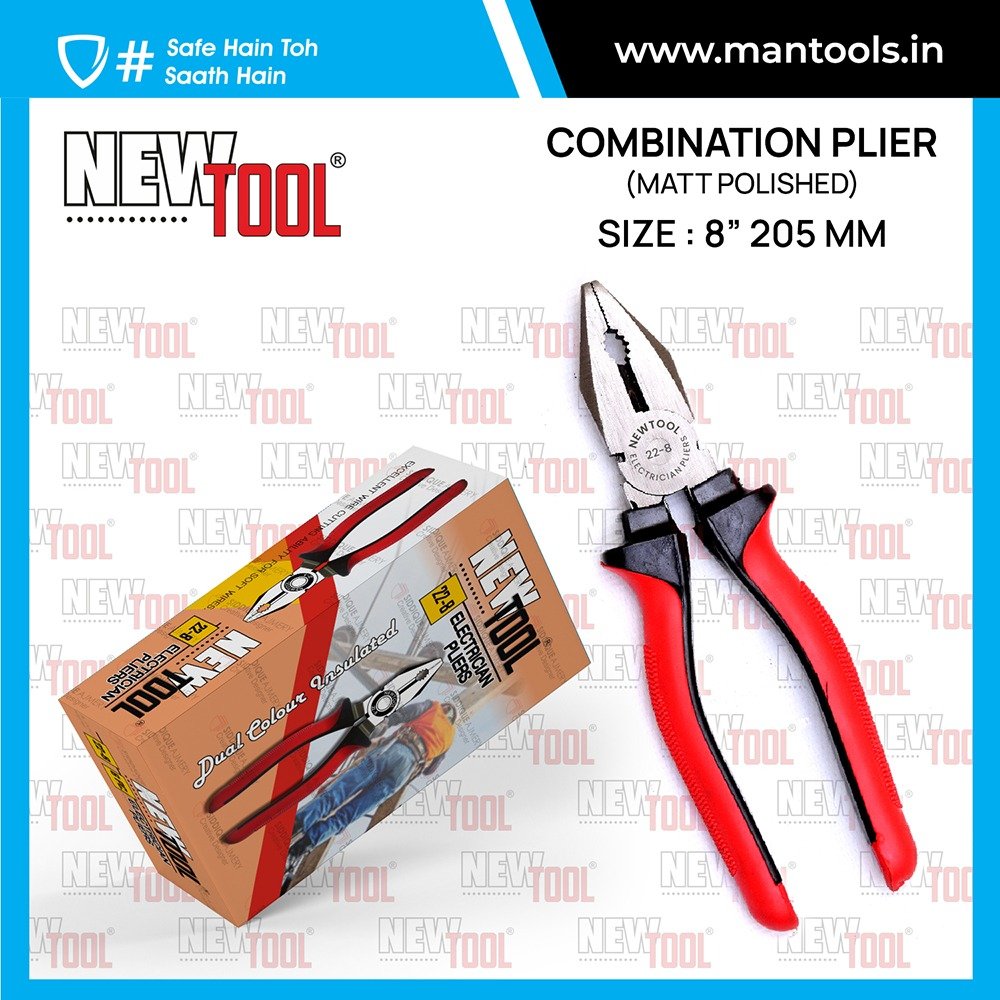 Combination Plier Double Colour NEWTOOL Created by MS steel comes with tempered and Double Colour PVC sleeve Drop forged to perfection MS Steel Comfortable insulated grip